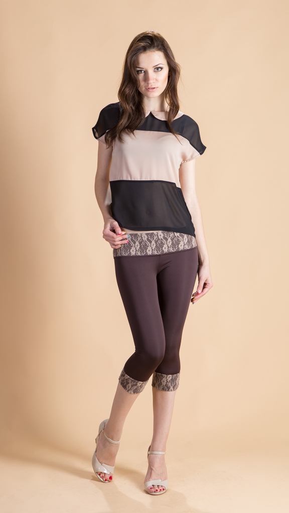 Бросские укороченные легинсы на каждый день. Изюминка этой модели - модные вставки из бежевого гипюра на поясе и нижнем крае брючин. Благодаря им, легинсы бросаются в глаза, и Вы точно не останетесь незамеченной. Прекрасно сидят, облегая и подчеркивая фигуру. Качественная ткань не скатывается и не затягивается.