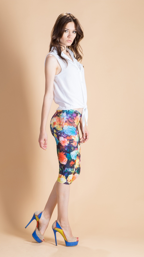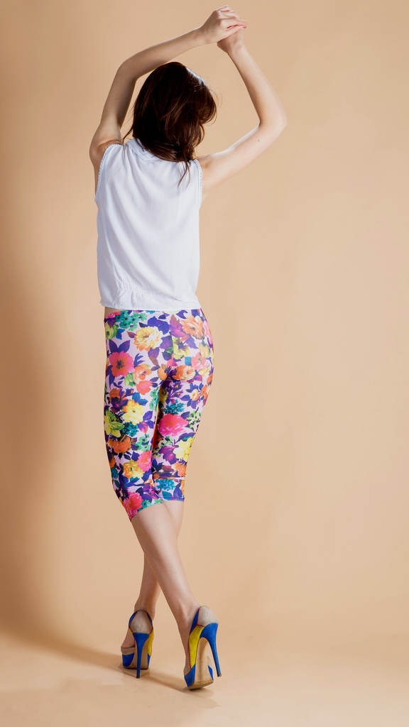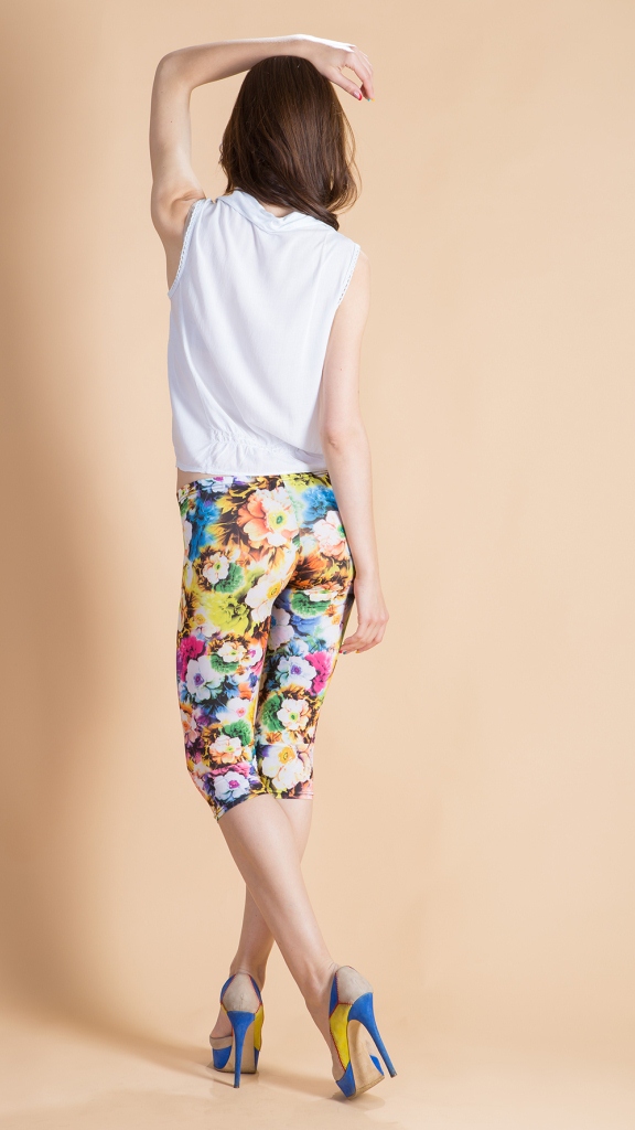 Яркие укороченные легинсы с цветочным принтом – то что нужно, если Вам надоели серые будни и Вы хотите чего-то нового и свежего. Сделайте себе и окружающим праздник. Разнообразные оттенки и простота формы. Дополните легинсы оригинальной футболкой или майкой и стильный наряд для жаркого лета готов.