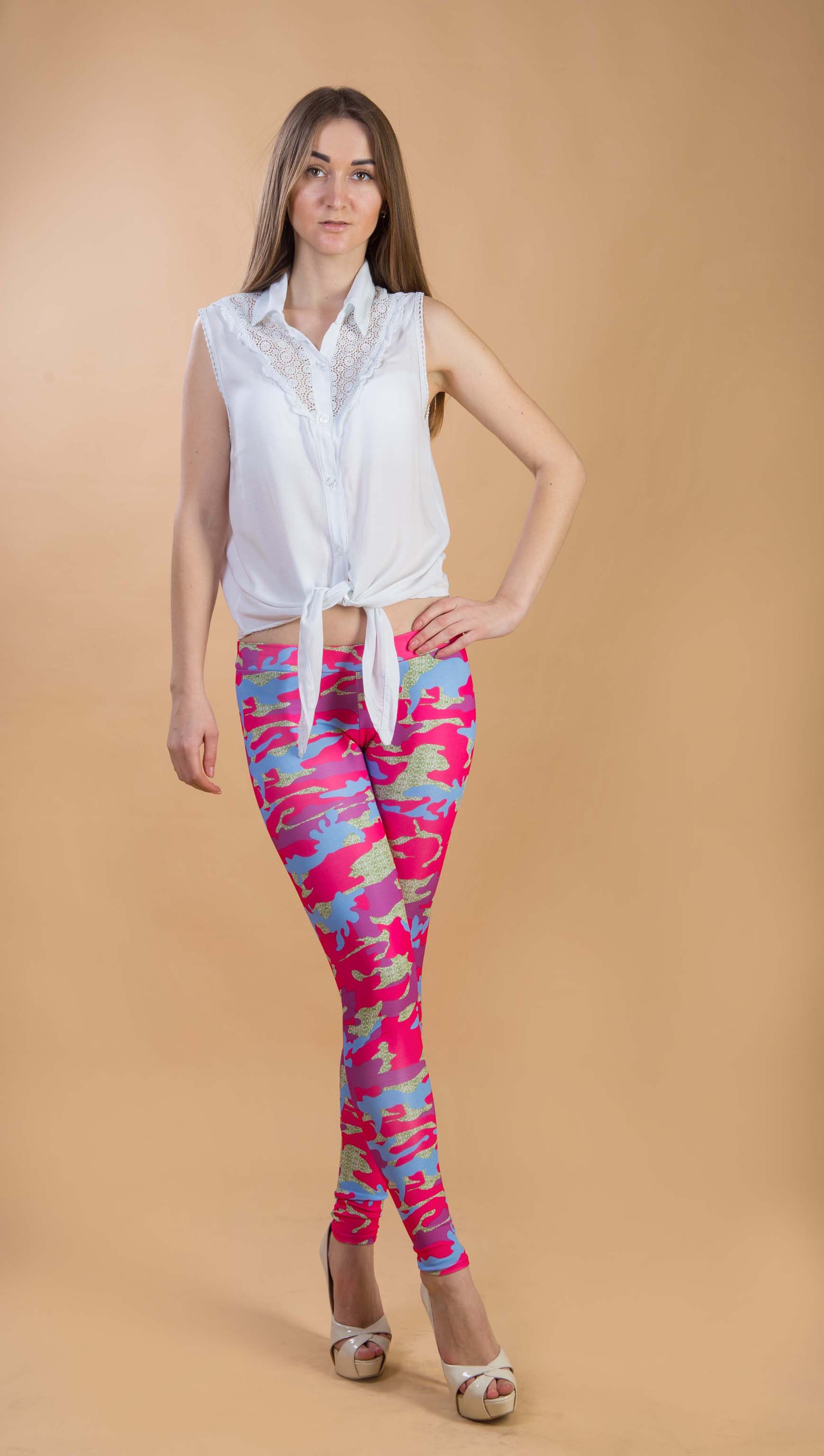Интересные облегающие лосини в стиле "милитари".Яркий принт подчеркнет вашу индивидуальность.Не выгорают на солнце и не сминаются.Отлично ложатся по фигуре.