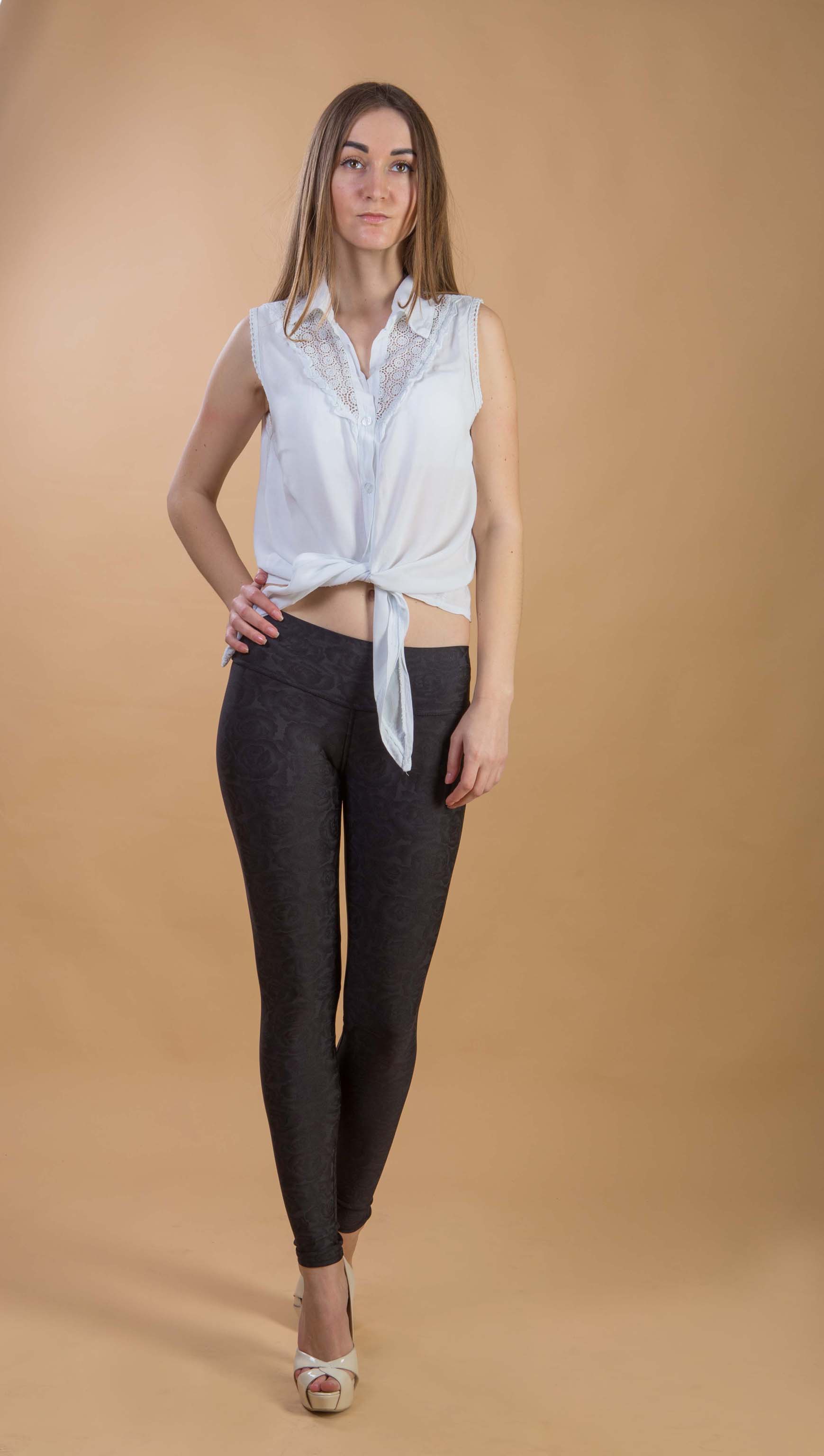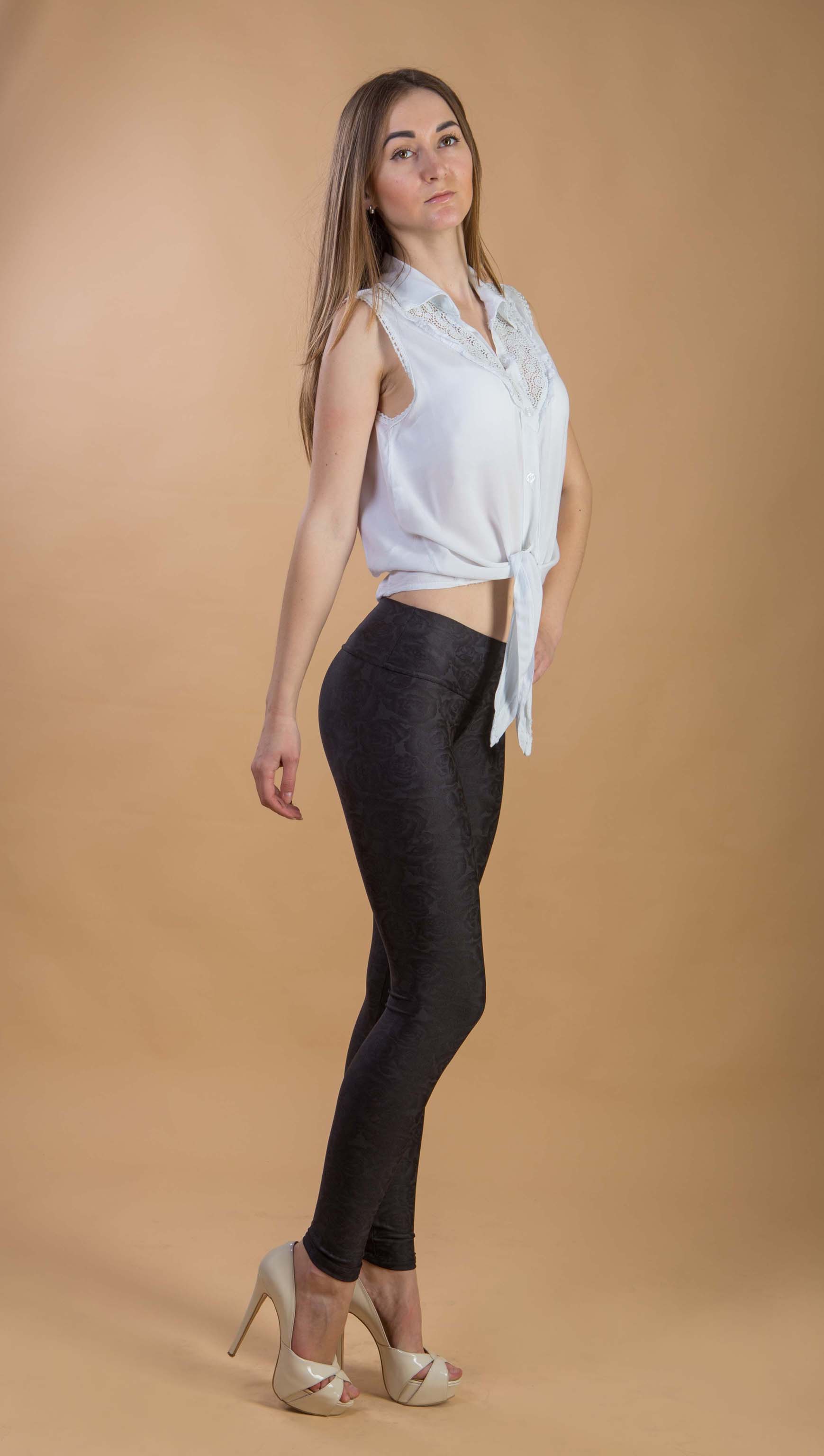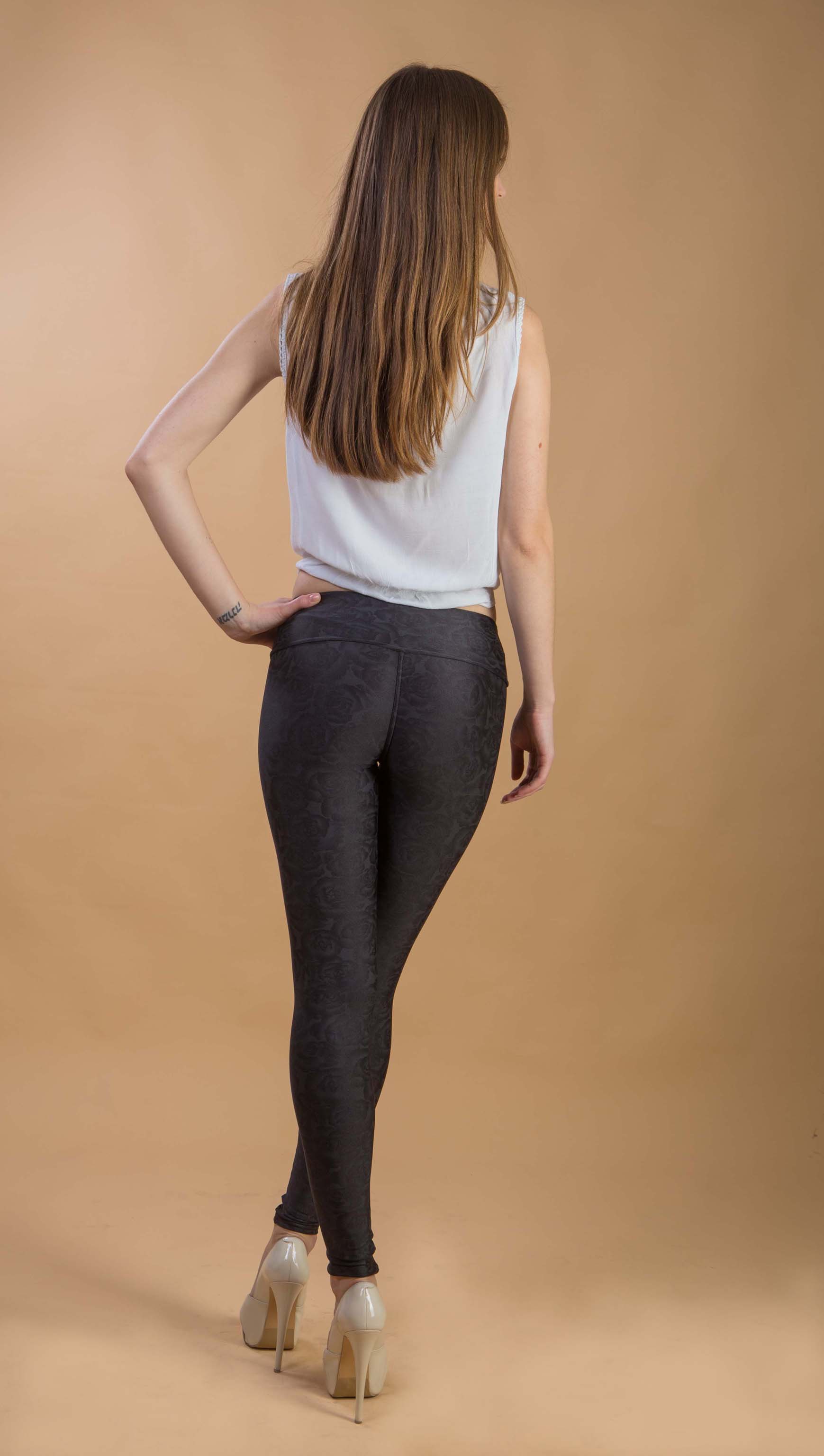 Лосины с розой – стильные и интересные. Соблазнительные и оригинальные лосины для уверенных в себе девушек. Подчеркнут фигуру и раскроют Вашу оригинальность. Дополните образ оригинальной футболкой и босоножками на высоком каблуке.