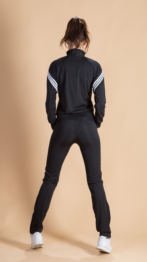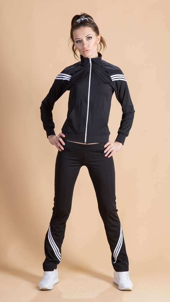 Женский спортивный костюм свободного кроя с белыми лампасами на кофте и внизу брючин. Очень удобная и практичная модель на каждый день. Большие накладные карманы спереди на кофте помогут при необходимости согреть руки или взять с собой не большие, но необходимые вещи. Кофту и брюки можно носить, как вместе, так и по отдельности.